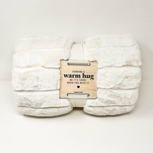 Faux Fur Blanket with Warm Hug Wooden Tag